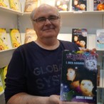 Ja, das bin ich - der Typ da rechts im Bild. Da halte ich noch ganz stolz ein Buch in die Kamera, das es inzwischen schon nicht mehr gibt. Es handelte sich um den ersten Versuch, meinen Roman "Weltenstein" als Druckausgabe zu etablieren, der sich, nachdem der Verlag sang- und klanglos in der Versenkung verschwunden war, mit einem lauten Knall in ein rosarotes Wölkchen aufgelöst hatte. Alle, die mit modernen Medien (hier speziell eBooks und Hörbücher) etwas anfangen können, werden sich immer noch den Text zu Gemüte führen können, am Rest arbeiten wir noch.